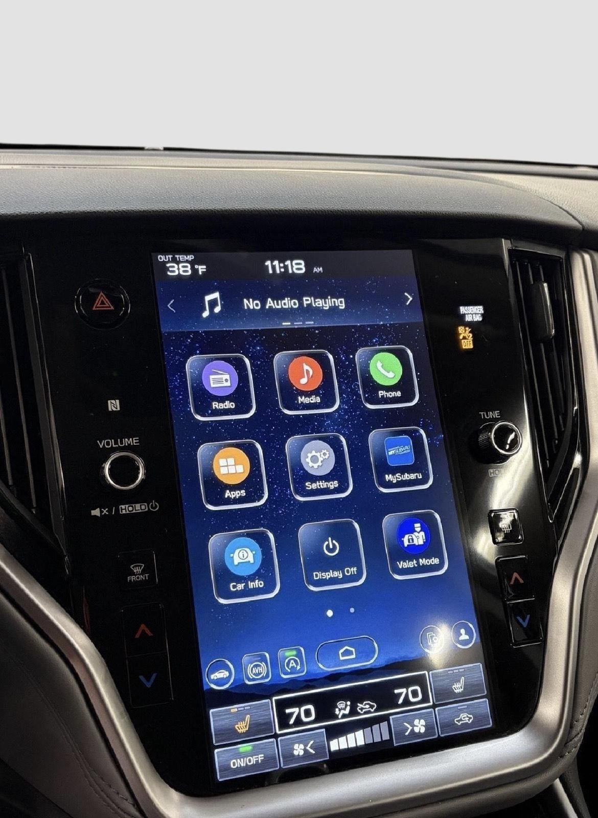 - Radio: Subaru STARLINK 11.6" Multimedia Plus Sys -inc: AM/FM stereo, HD Radio, valet mode, multi-touch gesture high resolution display screen, voice activated controls, Bluetooth® audio streaming and hands-free phone connectivity w/SMS text messaging (refer to subaru.com for cell phone compatibility), Near Field Communication (NFC), iPod control capability, SiriusXM w/360L (4 months free platinum trial/subscription required after; available after launch, possibly in June 2023), SiriusXM Travel Link (4 months free trial/subscription required after), smartphone integration w/full screen view and wireless connection for Android Auto, Apple CarPlay and STARLINK cloud applications (refer to subaru.com for app availability), USB and Over The Air (OTA) audio system update, audio/Bluetooth® steering wheel control switches, 6 speakers, 3.5mm illuminated front auxiliary input jack and illuminated front and rear USB-A and USB-C input/charge ports